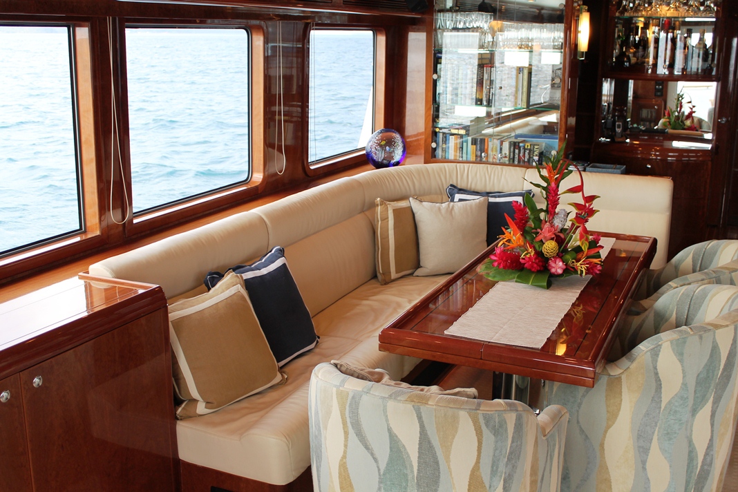 Common spaces include the open plan galley, dining & lounge areas on the main deck as well as 3 exterior decks - main deck, upper deck and fly or sun deck all complete with dining areas. The bridge or wheelhouse is also open for ...