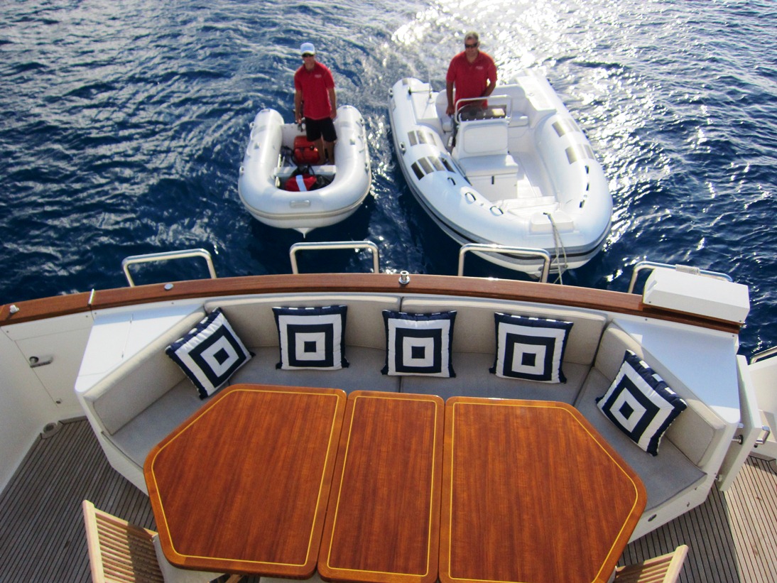 Motor Yacht BEYOND CAPRICORN has ample deck space for guests to enjoy and relax, the main deck boats the first of 3 al fresco dining ...