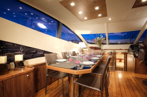 The formal dining area is located just forward of the salon, up one step.