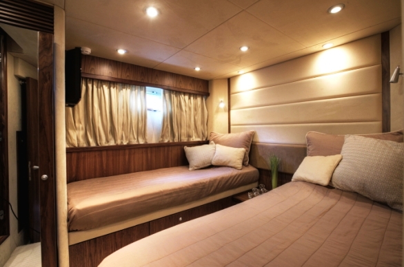 She can accommodate 8 charter guests in 4 cabins and has a cruising speed of 25 knots.