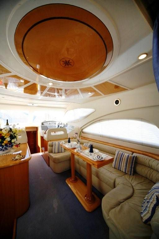 Thanks to the yachts large elongated windows the salon receives ample natural light.