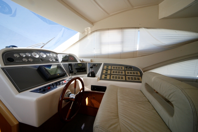 The helm in forward and central with wrap around seating on the exterior, giving guests ample places to sit, an optional Bimini cover can be raised or folded down. Further aft on the flybridge a double sunpad offers additional sunning and relaxing space.