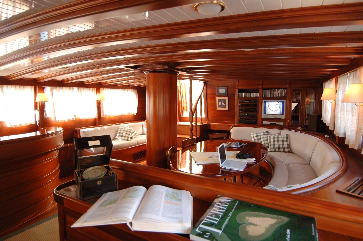 The Ketch ECCE NAVIGO is able to accommodate up to 10 guests in 3 double and 2 twin bed guest cabins, each with en suite bathroom. All of the cabins are beautifully appointed with panelled mahogany joinery and doors.