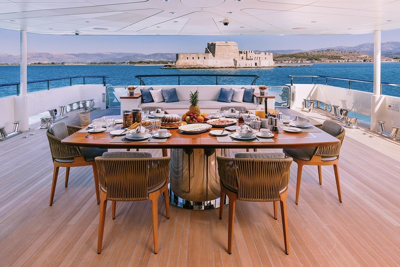 XANA is able to accommodate 12 charter guests in 6 spacious cabins with an 8 member crew offering silver service on board.