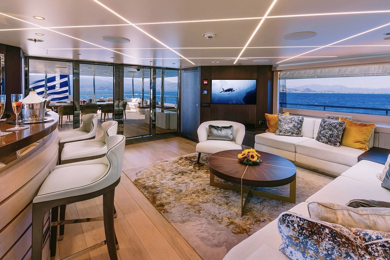 The sky lounge on the upper deck boasts another seating area, a bar and a grand piano plus a professional mixing desk/recording studio.