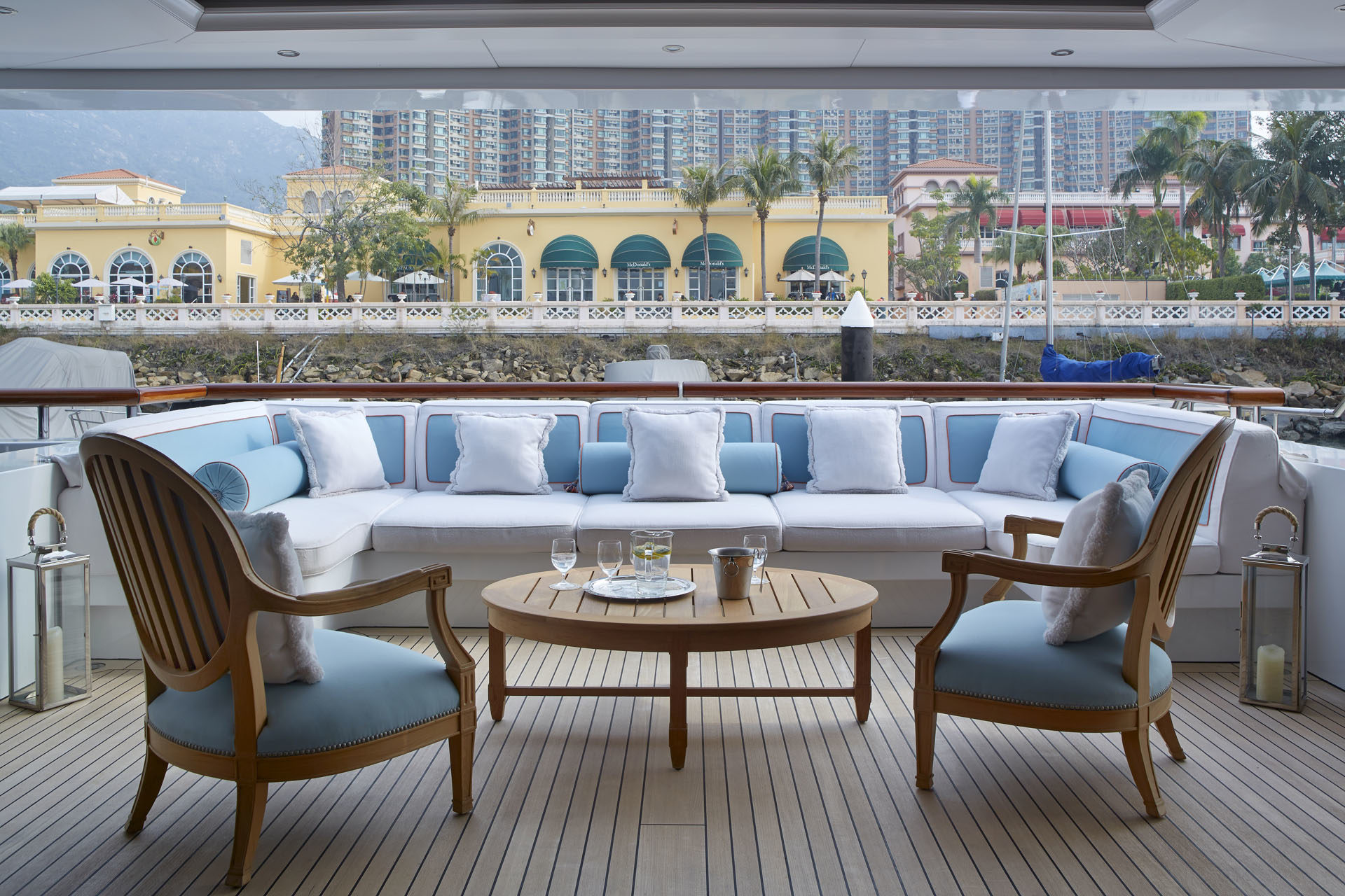 The sundeck has been designed to provide seating for large groups, there is a large dining table and a bar as well as a glass sided jacuzzi. Simply everything to make Lady Candy's guests entertained and relaxed.