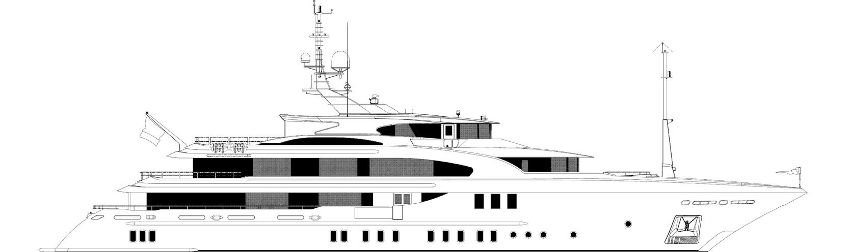 There is a cinema, a massage room and a dance floor. The tender garage has been moved forward and the space it vacated replaced by a beach club with lounge bar, coffee tables and chairs, gym, sauna and Turkish bath as well as an open style transom.