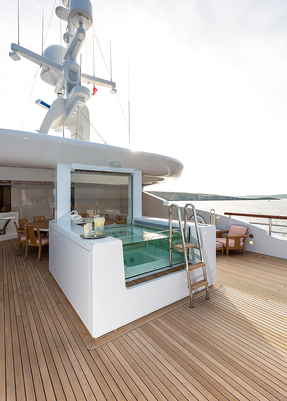 Her layout is designed by Central Yacht, while her naval architecture is by the yard's in-house team. She is completely custom-designed, and accommodates up to 12 guests in 6 cabins.