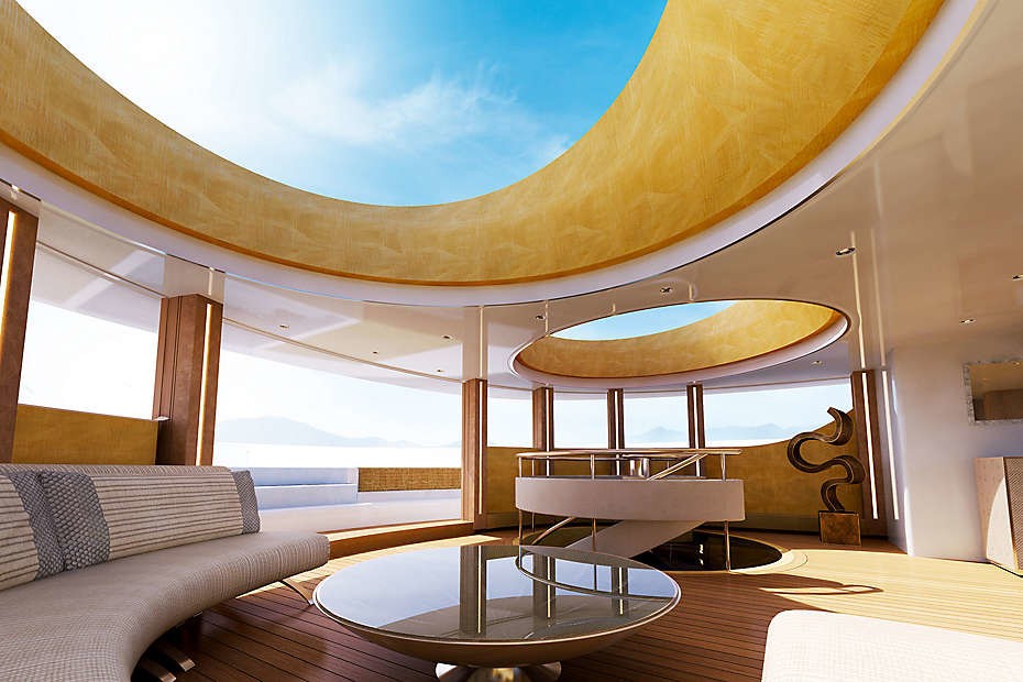 The lower deck contains the spacious Ocean Lounge, designed to extend out onto the swim platform for relaxation beside the crystal clear blue water.