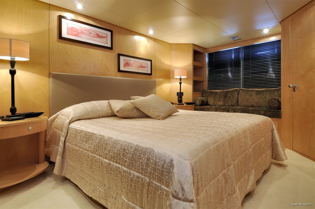 All cabins are light and airy, with a contemporary welcoming ambiance. Tenders & Toys onboard the ARIA motor yacht include a Novurania 4.30m RIB Tender with Yamaha 70HP outbaord engine.