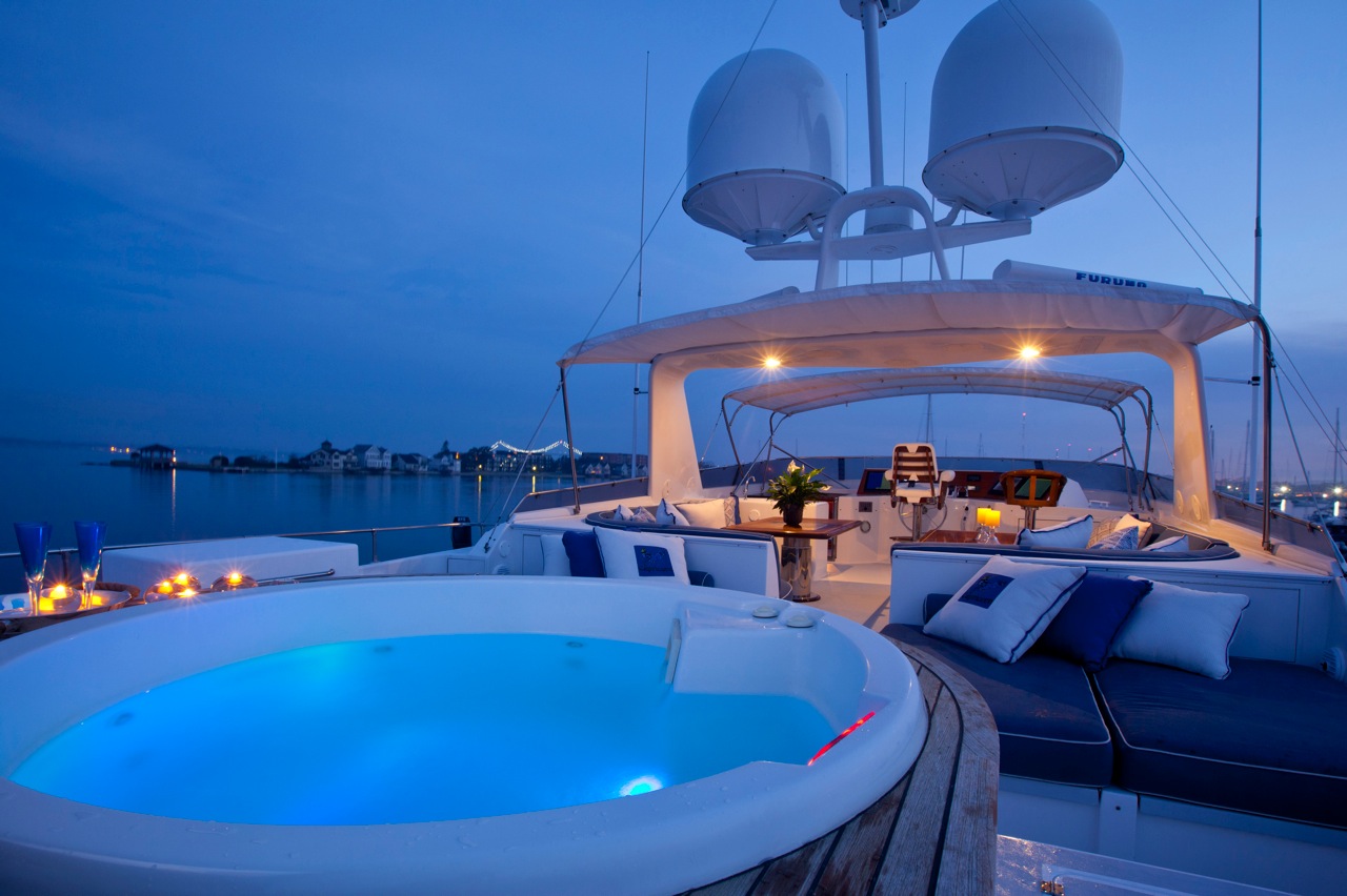 Motor yacht CAPRICORN offers full open air walk around decks with plenty of space to relax. The aft deck is adjacent to the salon and has an optional shaded alfresco option, further aft a large swim platform makes water access easy for all to enjoy.