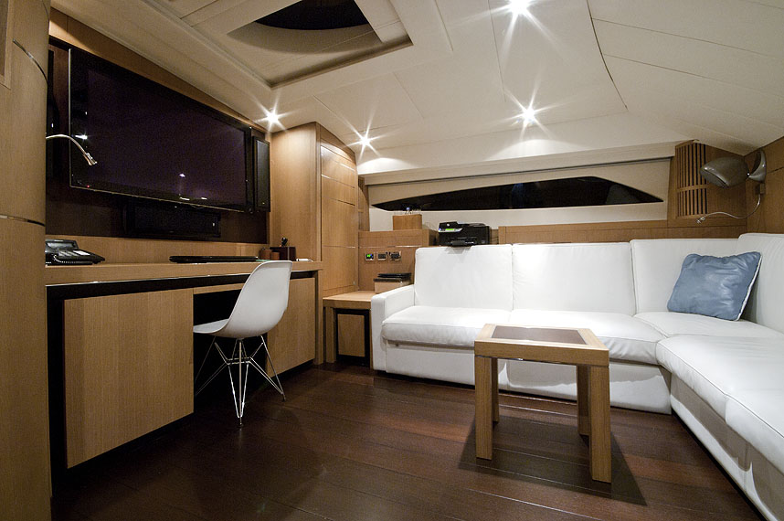 Above the main deck, the flybridge boasts further seating and chaise lounges.