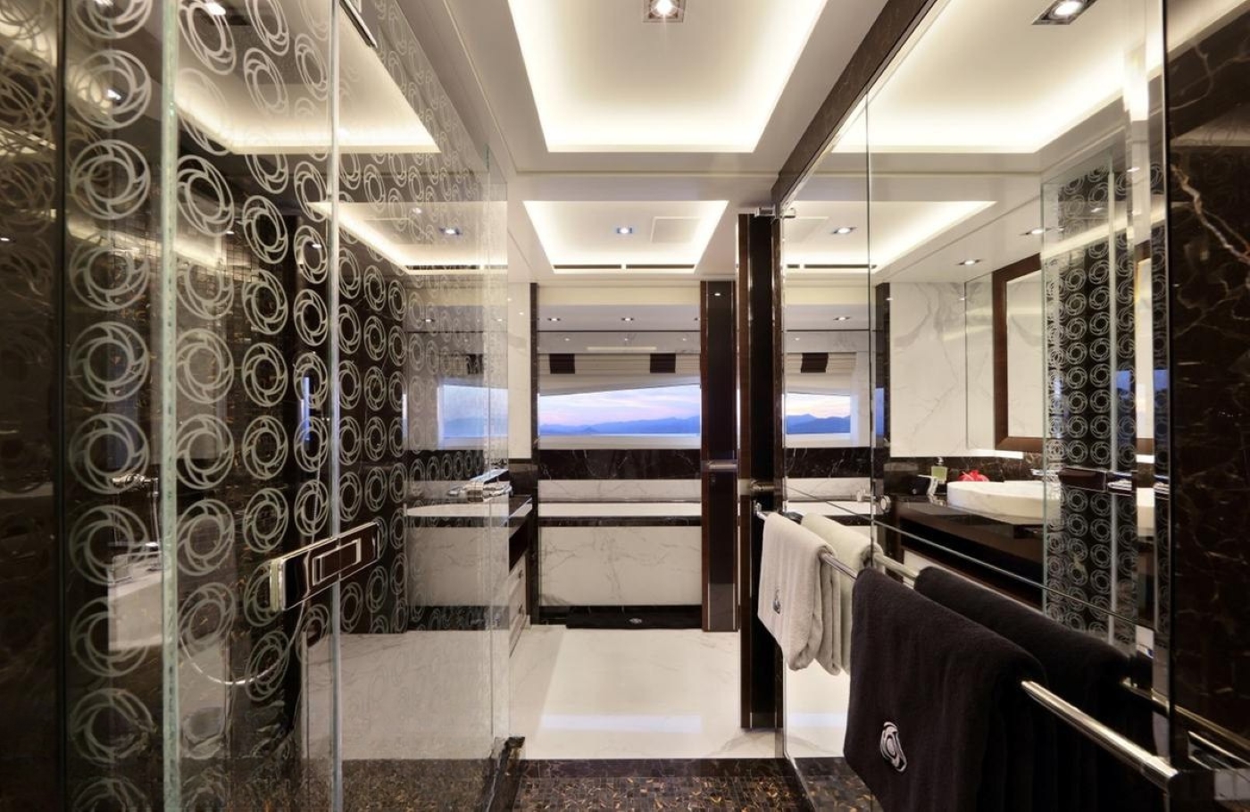 The master suite can be found forward on the main deck and the three double guest cabins are located on the lower deck. All guest cabins feature en-suite shower rooms and are all named after famous racecar designers: Bertone ...