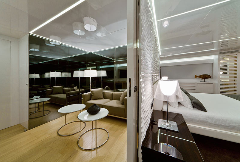 Arcadia 115 super yacht SUN accommodates 12 guests in her marvellous full-beam master suite on the main deck, and four double cabins on the lower deck, featuring some unusual characteristics, such as the foredeck dedicated to ...