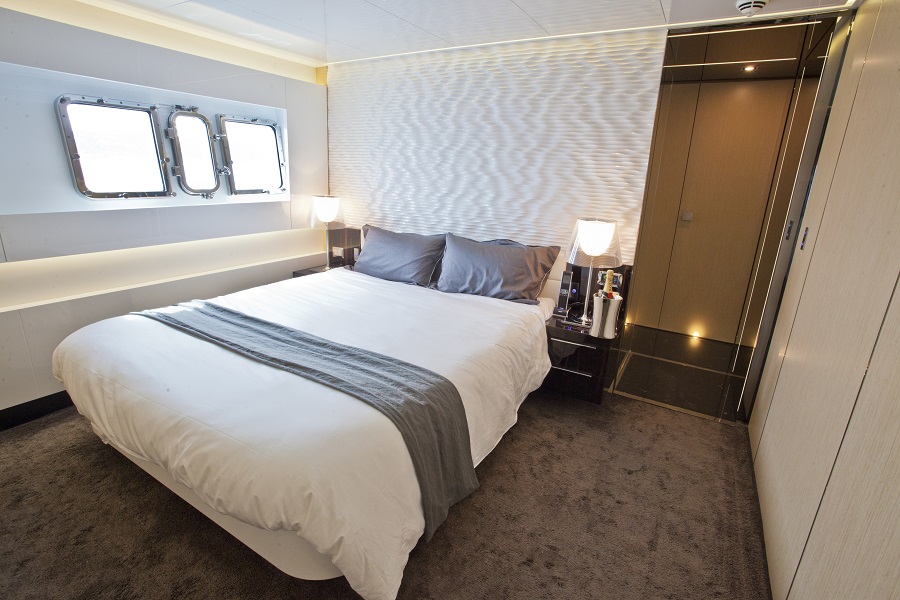 Arcadia 115 super yacht SUN accommodates 12 guests in her marvellous full-beam master suite on the main deck, and four double cabins on the lower deck, featuring some unusual characteristics, such as the foredeck dedicated to ...