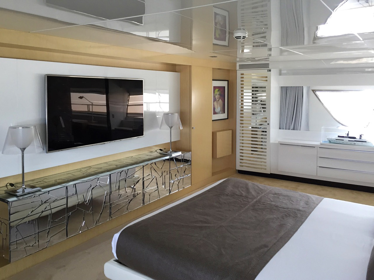 Arcadia 115 super yacht SUN accommodates 12 guests in her marvellous full-beam master suite on the main deck, and four double cabins on the lower deck, featuring some unusual characteristics, such as the foredeck dedicated to ...