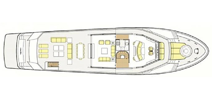 Arcadia 115 super yacht SUN accommodates 12 guests in her marvellous full-beam master suite on the main deck, and four double cabins on the lower deck, featuring some unusual characteristics, such as the foredeck dedicated to ...