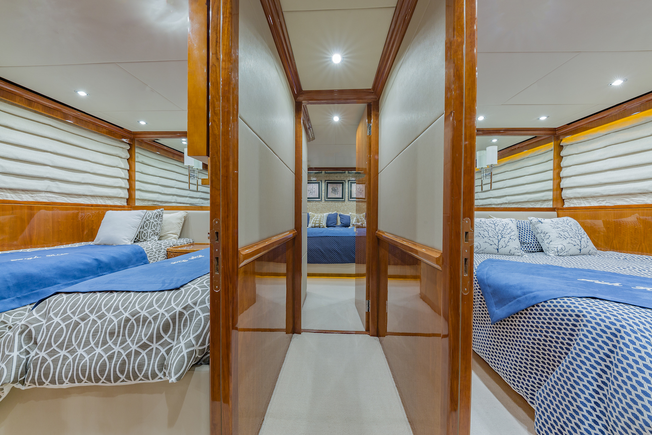 HIGH RISE boasts a fibreglass hull with a beam of 6.40m (21'). She is powered by a Caterpillar C32 Inboard diesel engines, allowing her to reach ...
