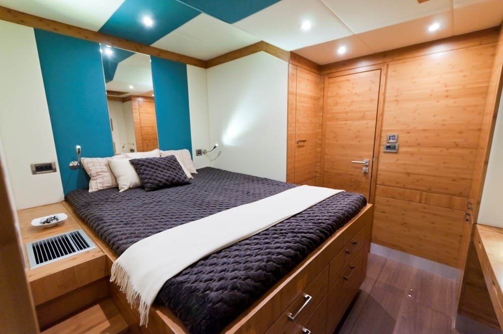 One of the guest cabins and the crew cabin are fitted with double beds, and the second guest cabin, great also for children, has bunk beds. All cabins have private en-suite bathrooms.