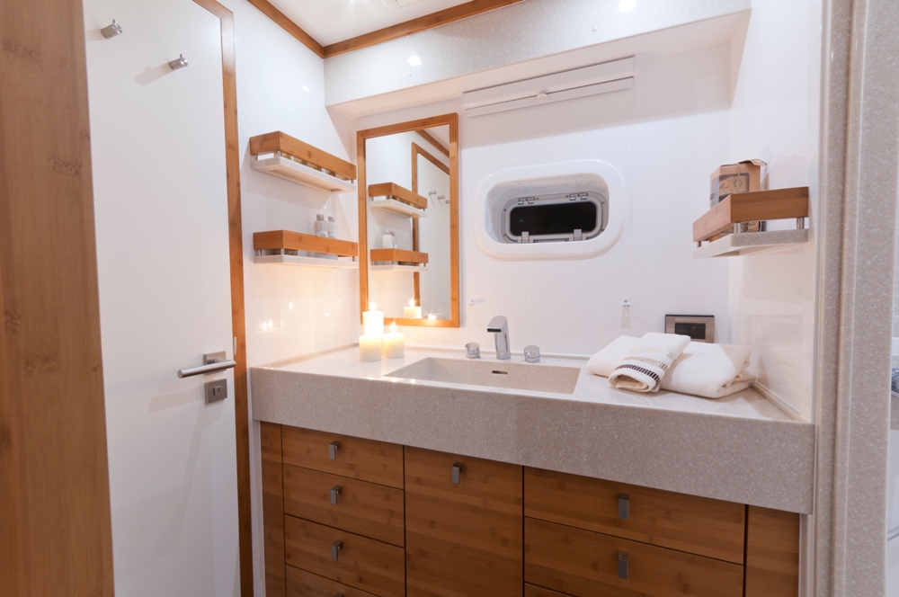 There is a beautiful saloon/dining room on the main deck with two coffee tables convertible into one large dining table, a 40´ LCD TV and DVD, and a fully equipped galley with an ...