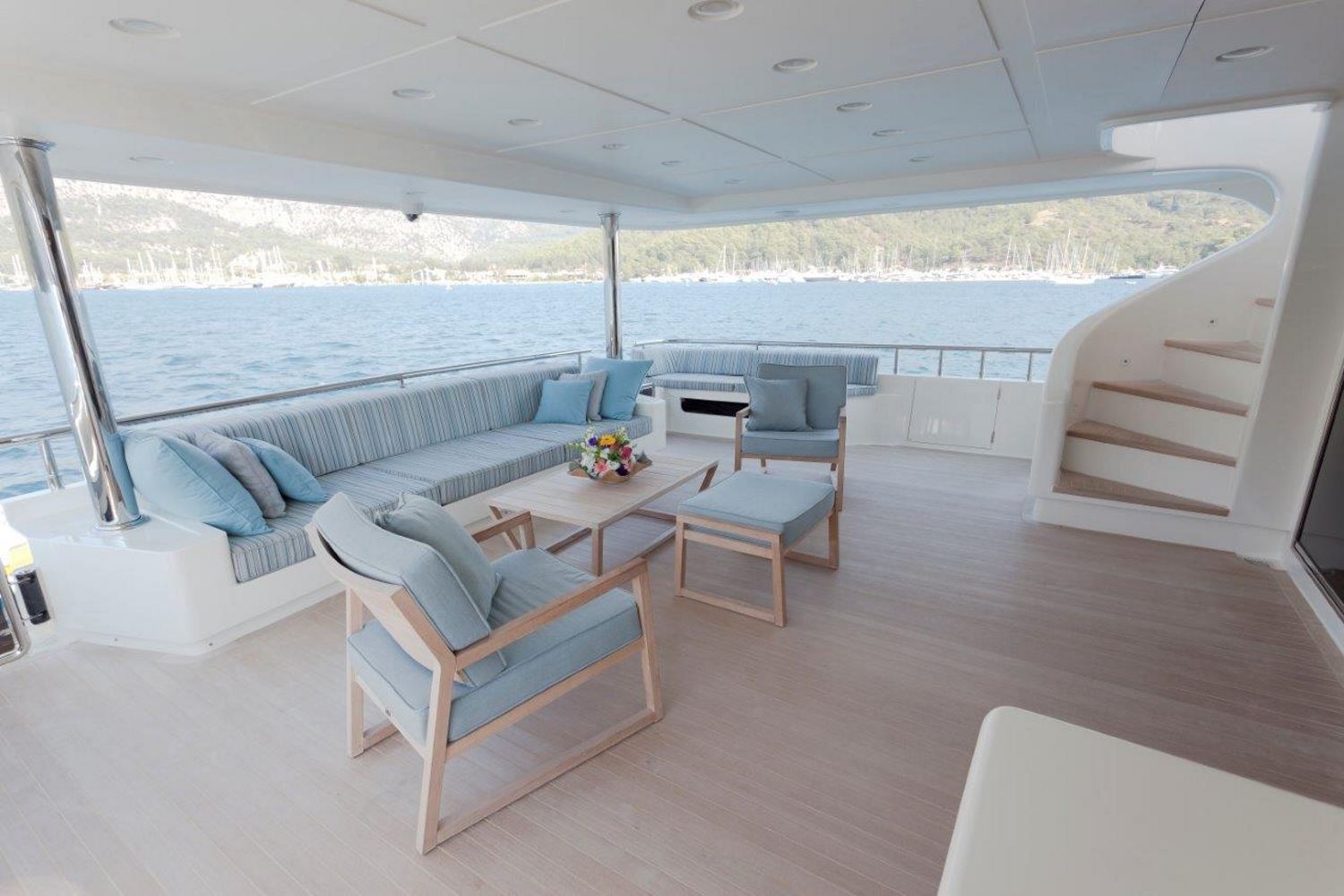 Further alfresco dining is available for up to 10 guests on the aft deck and 10 on the sundeck.