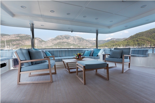Further alfresco dining is available for up to 10 guests on the aft deck and 10 on the sundeck.