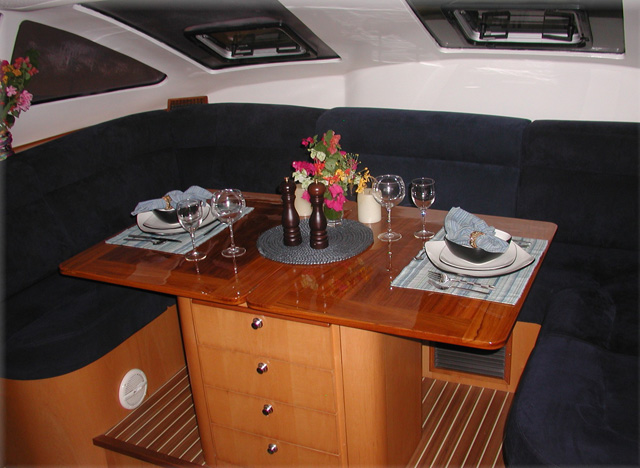 The salon offers a formal dining option and sofa, for a more romantic feel the adjacent cockpit offers an alfresco dining option.