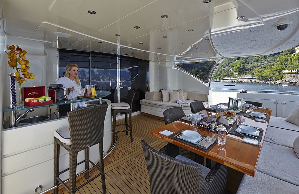 MAIN FEATURES: ~ Spa Pool ~ 7 Crew ~ Sunbathing Area ~ Formal Dining & Alfresco Dining Areas ~ Top Speed of 35 kn ~ Zero-speed Stabilisers ~ Shallow Draft