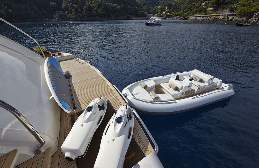 She features a Spa Pool, the latest sound systems and a wide selection of water toys. She is also a comfortable and stable yacht featuring zero speed stabilisers.