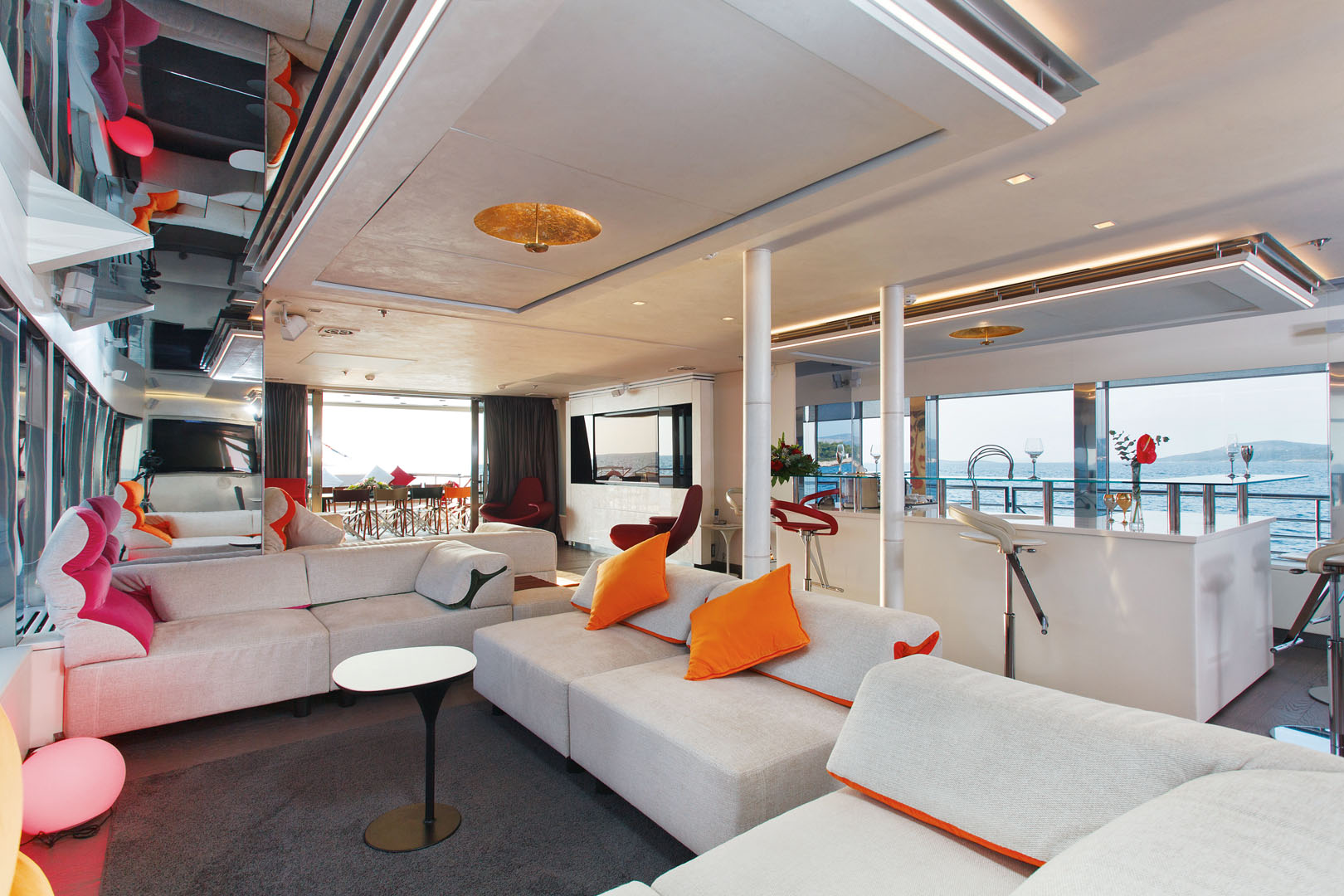 The lower deck hosts a beautiful spa centre with a gym, sauna and Hammam. Aft deck is pefrect for alfresco dining, as it boats 47 sqm of space for socialising and entertaining.