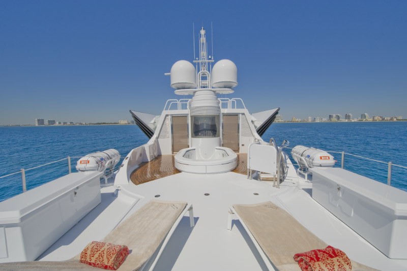 The sun deck with access via gym is located forward, offering private dining for 8 guests or sunning area as well as large awning. There is a popular Spa Pool aft, with ...