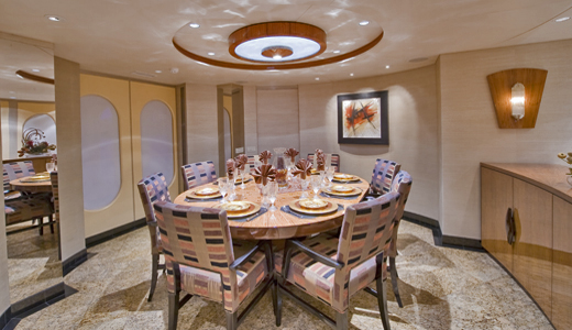 The sun deck with access via gym is located forward, offering private dining for 8 guests or sunning area as well as large awning. There is a popular Spa Pool aft, with ...