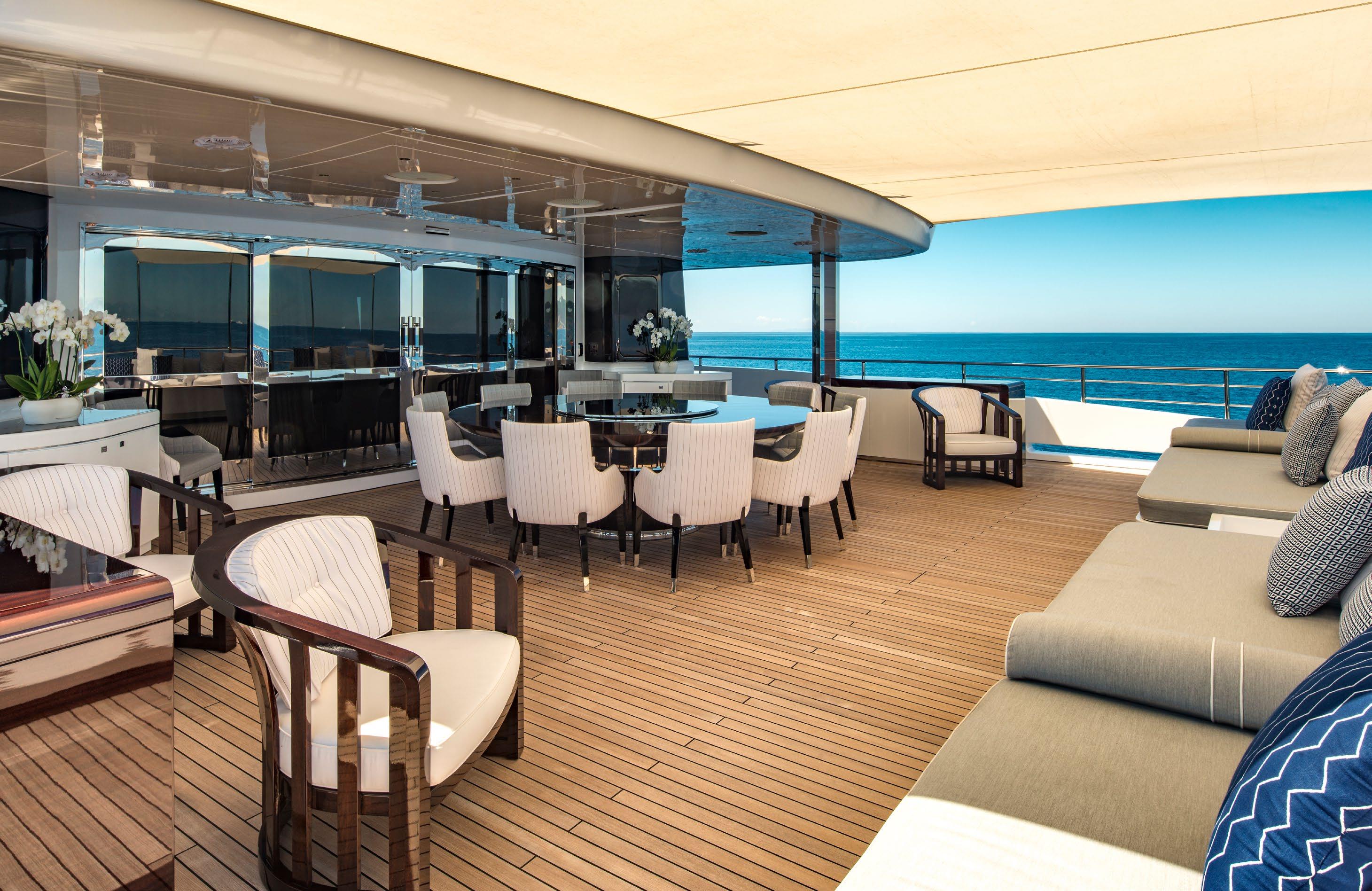 NOTABLE FEATURES: ~ spacious decks ~ master and VIP cabins on main deck ~ numerous dining options ~ on deck Jacuzzi ~ huge swim platform/beach club ~ onboard gymnasium ~ at anchor/underway stabilisers ~ WiFi ~ great selection of ...