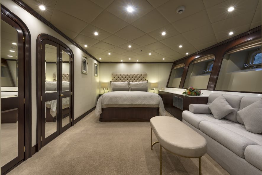 The upper deck boasts the master stateroom and one twin cabin, while on the lower deck is the VIP cabin, a double cabin and one twin cabin. All guest cabins are spacious, light and offer a calm atmosphere to unwind.