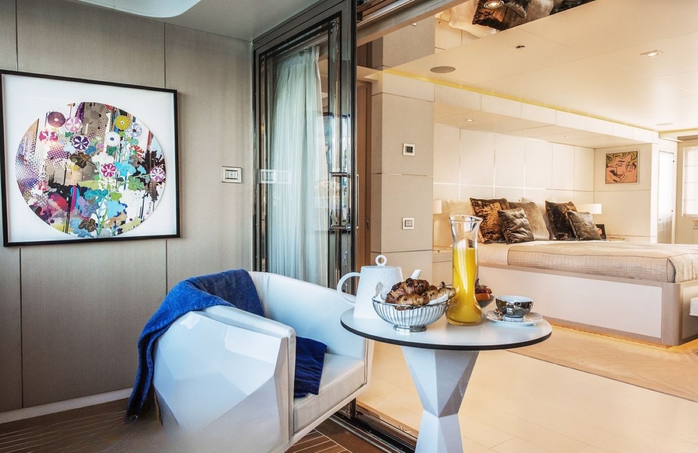 The impressive main and upper decks are well thought out and offer multiple dining and lounging areas for formal or relaxed occasions. The entertainment theme continues up to her sundeck where a large Spa Pool, further lounging areas and a bar can be found.