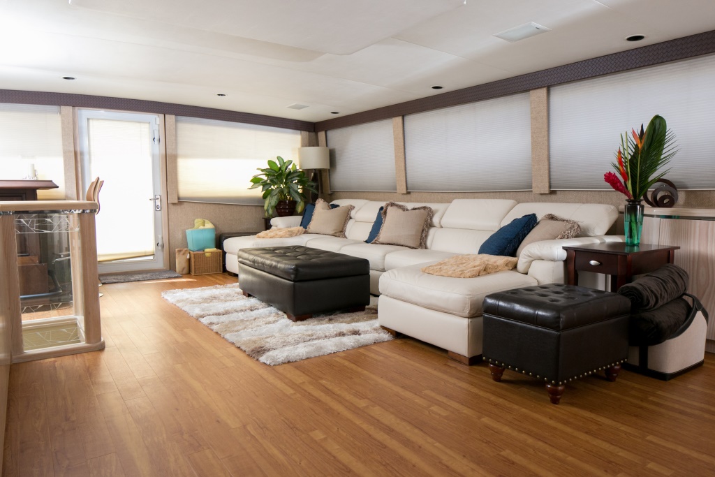 The yacht ISLAND TIME’s main salon and dining area is a wonderful place to relax and enjoy the full entertainment center, pop up & swivel 42” Plasma TV with DVD/CD/IPOD with surround sound. In the salon there is a full wet bar and formal dining area for up to 10 charter guests.