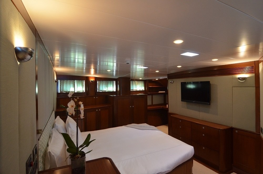 The superstructure and deck area of the S/Y Kestrel is designed for a relaxed onboard lifestyle with a convertible cockpit. This is an adaptable space with sliding seating units for relaxing, dining and dancing.