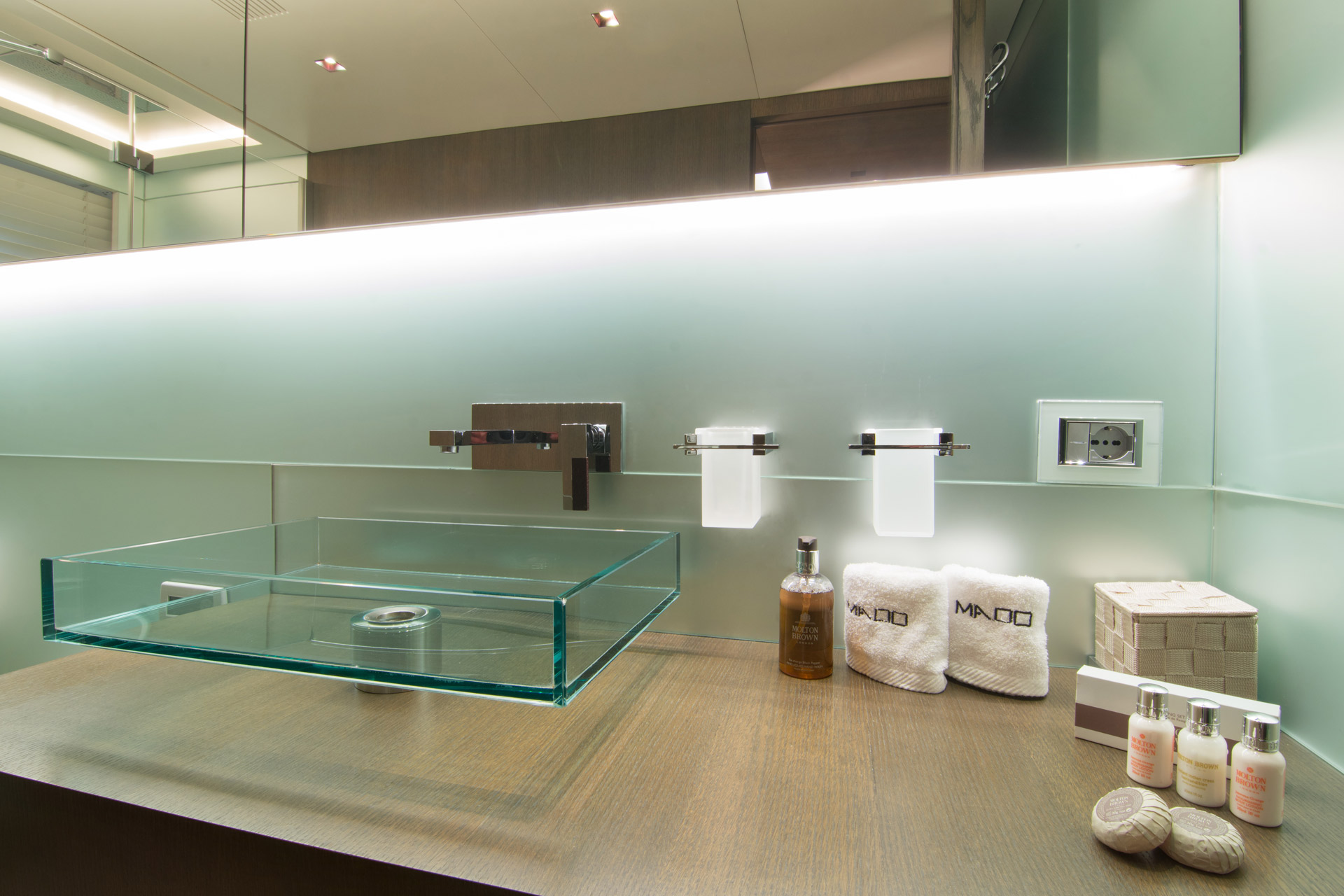 The yacht features several outdoor deck spaces to relax including a large sundeck with plenty of sunbeds, a table for al fresco dining and a large pop-up TV with a flat screen, ideal for watching a movie in the evening.