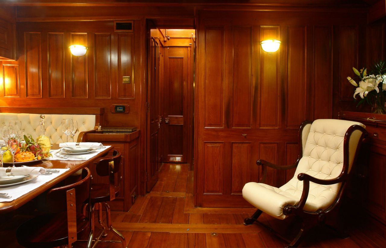 She can accommodate up to 8 charter guests, in 4 cabins.