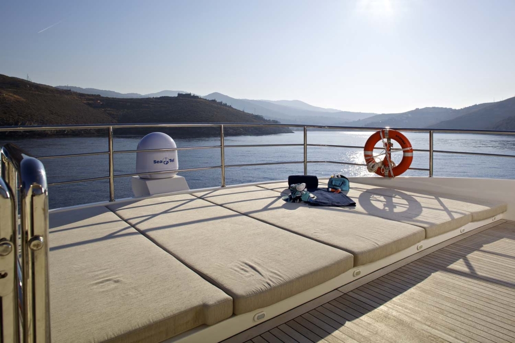 Luxury Motor Yacht SANJANA boasts a fabulous sundeck, with another alfresco dining option, a complete bar and 2 massive sunpads. On the foredeck is a further sunpad and upholstered seating area. The numerous, spacious areas on ...