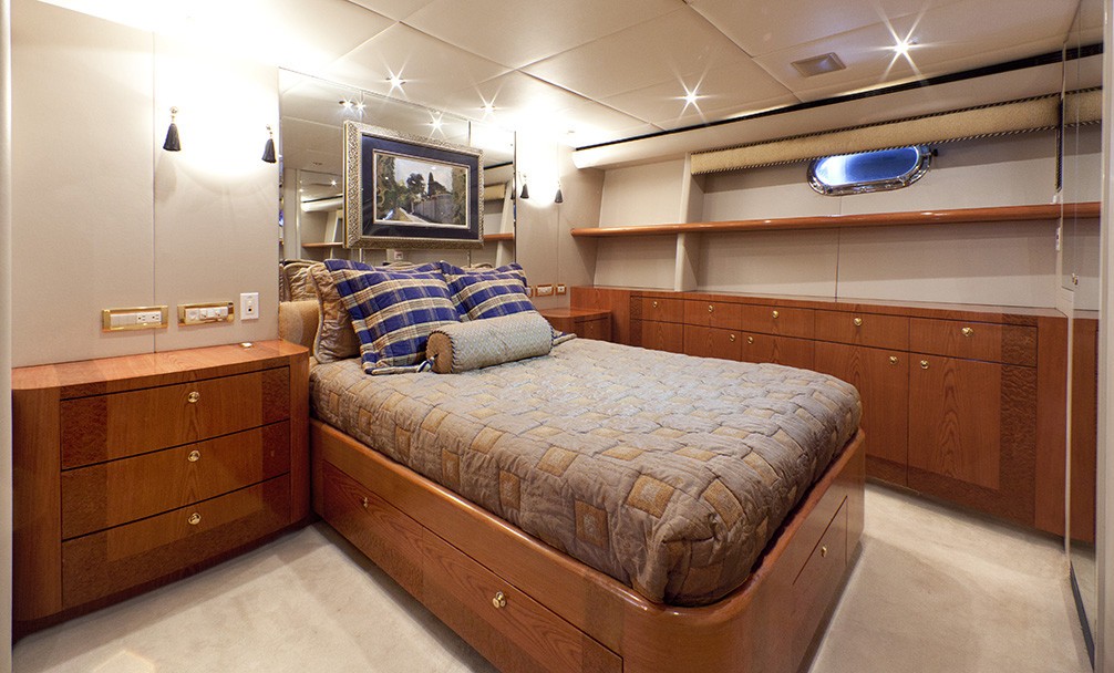 YOLY has an additional alfresco dining option on the fly bridge as well as plenty of lounge space, accessible from the salon or the aft deck. YOLY can accommodate 8 guests in 4 cabins, the master cabin has a king size bed, his and hers ensuite bathroom which includes a shower and Spa Pool Tub.