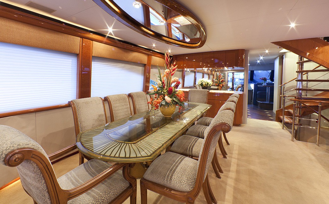 She offers ample deck space too, the aft deck is open yet shaded and directly accessed through from the salon, featuring an alfresco dining option and aft seating, beyond this the large swim platform is ideal for water activities.