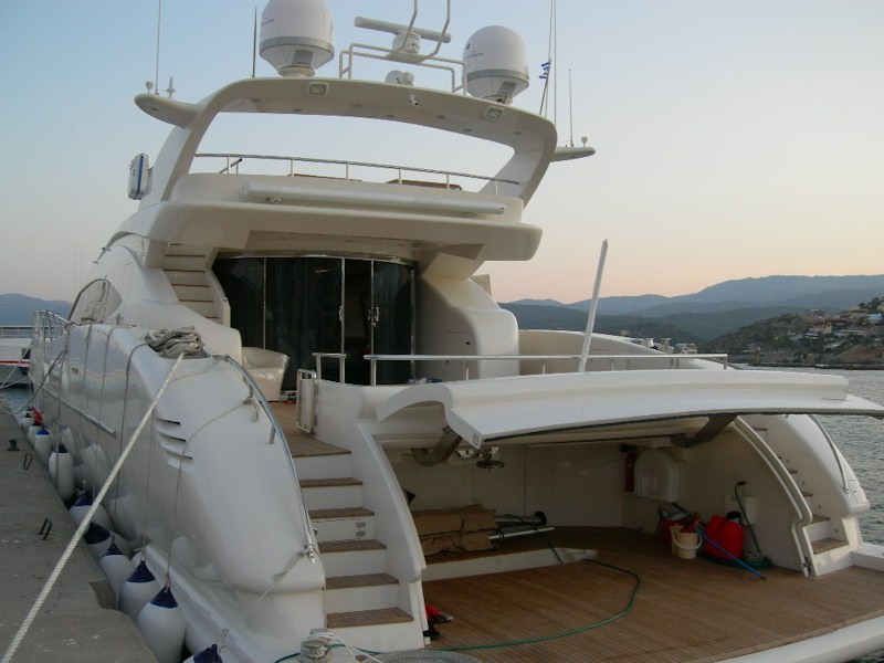 This super yacht offers innovative and spacious exterior living, her voluminous aft deck has full beam upholstered seating with 2 alfresco tables that can be lowered to transform into massive sun pads.