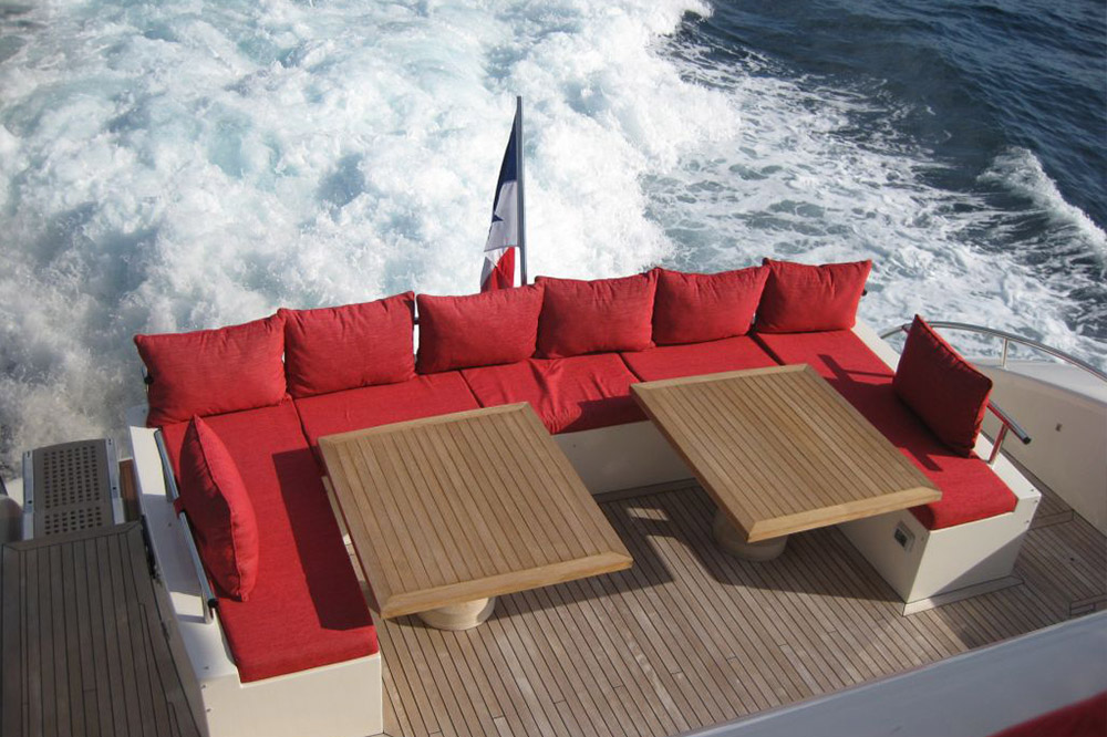NOTABLE FEATURES: ~ Large sundeck ~ Flybridge ~ Table convertible into sun pads ~ Alfresco dining ~ Bar ~ Spacious ensuite cabins ~