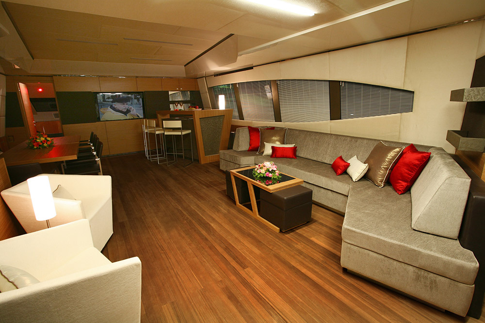 NOTABLE FEATURES: ~ Large sundeck ~ Flybridge ~ Table convertible into sun pads ~ Alfresco dining ~ Bar ~ Spacious ensuite cabins ~