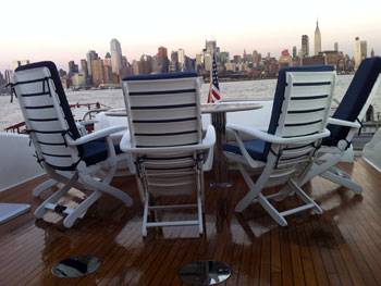 Aft of the salon expansive sliding doors lead onto the aft deck and an alfresco dining area. HAIL MARY also offers a comfortable sky lounge with plenty of entertainment features such as I-pod docking station, Xbox Kinect, XM Satellite TV and an additional alfresco dining option.