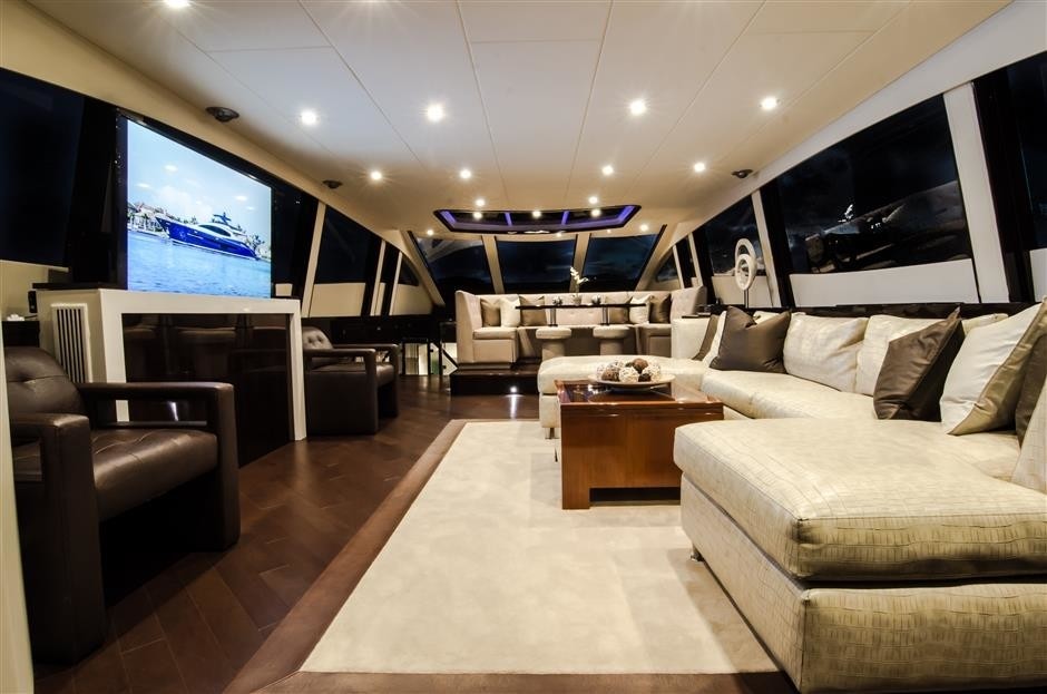 28m motor yacht Algorythm is the latest member of the LSX92 series, built by the American shipyard Lazzara Yachts. Launched in 2011, the Algorythm superyacht differs from the other LSX92s thanks to her extended sundeck, which is significantly larger. In addition, there is also a larger hardtop on the aft deck to provide a welcome shaded area.