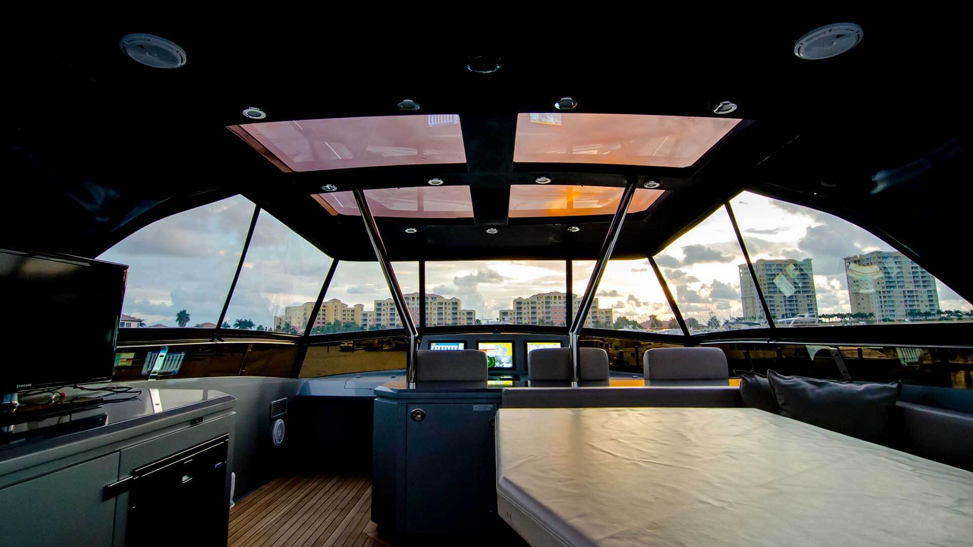 The interior of ALGORYTHM is larger than usual, with the lower inside helm station having been removed from the main deck.