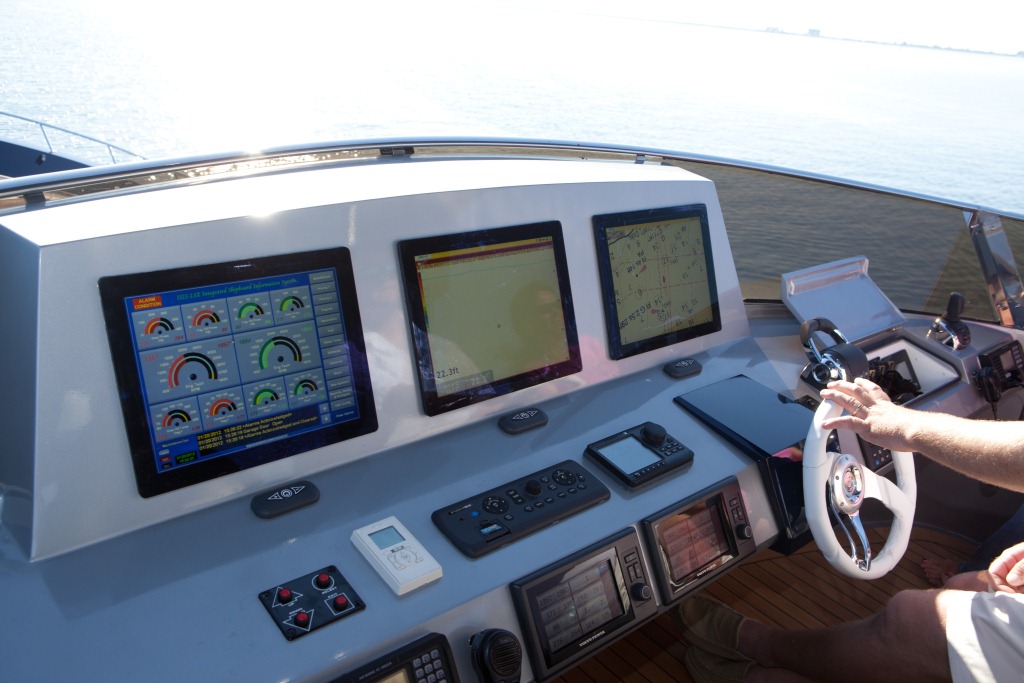 The interior of ALGORYTHM is larger than usual, with the lower inside helm station having been removed from the main deck.
