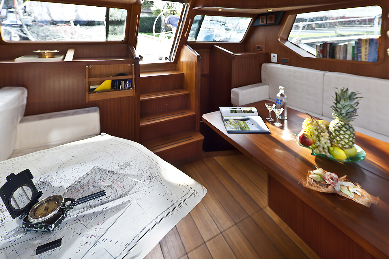 Launched in 2010 Motorsailer Myosotis is a 20 meter sailing boat made of steel with teak trim, built by Sogim Yacht with design by Lenci Design. The interior is divided into three double cabins for guests, the suite in the bow, a VIP cabin and one with bunk beds and cabin crew.